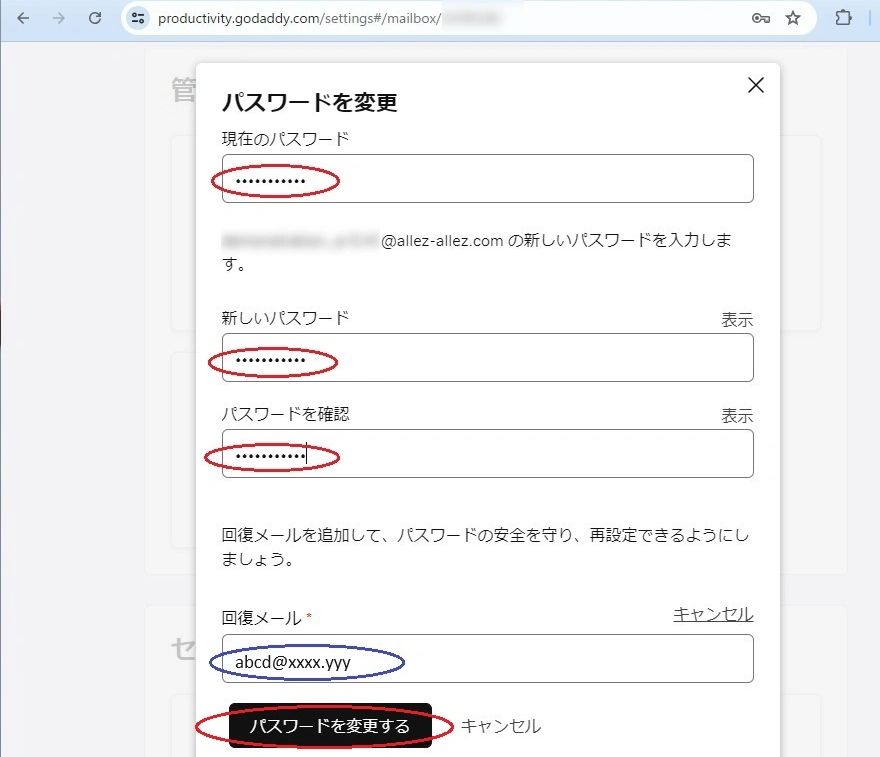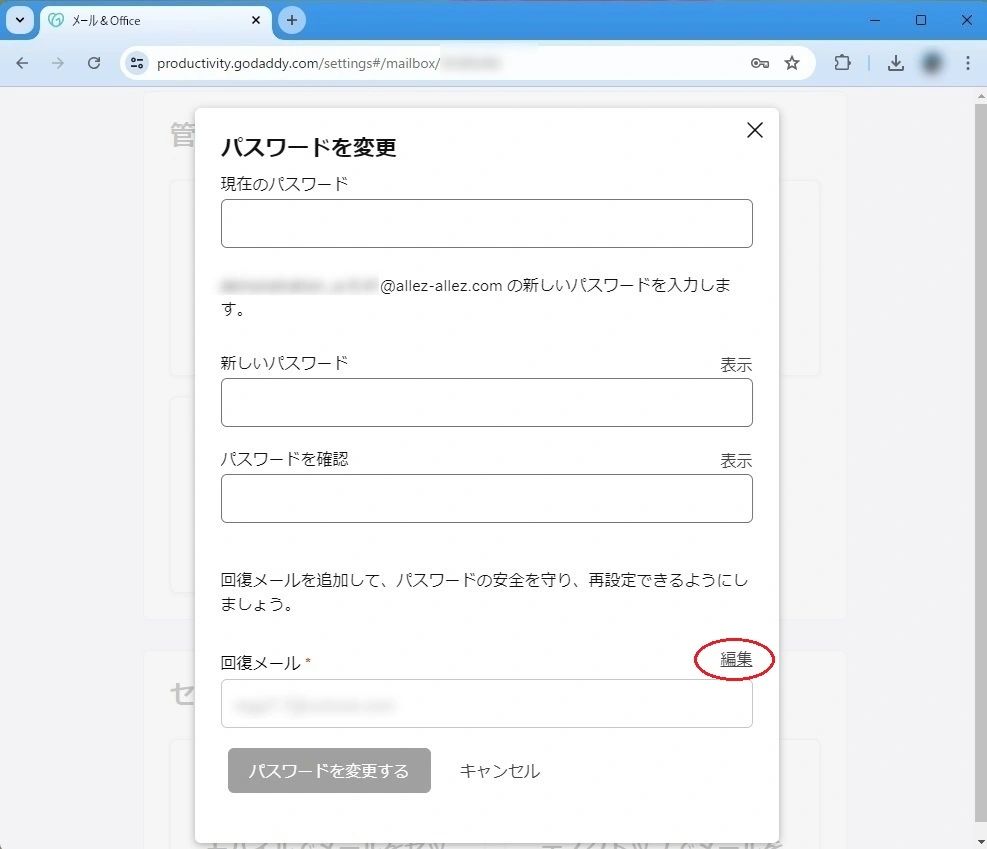「回復メール」の右側にある「編集」をクリックすると、「回復メール」も編集可能になります。